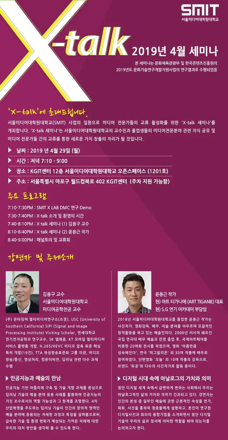 장 소: KGIT센터 12층 서울미디어대학원대학교 오픈스페이스