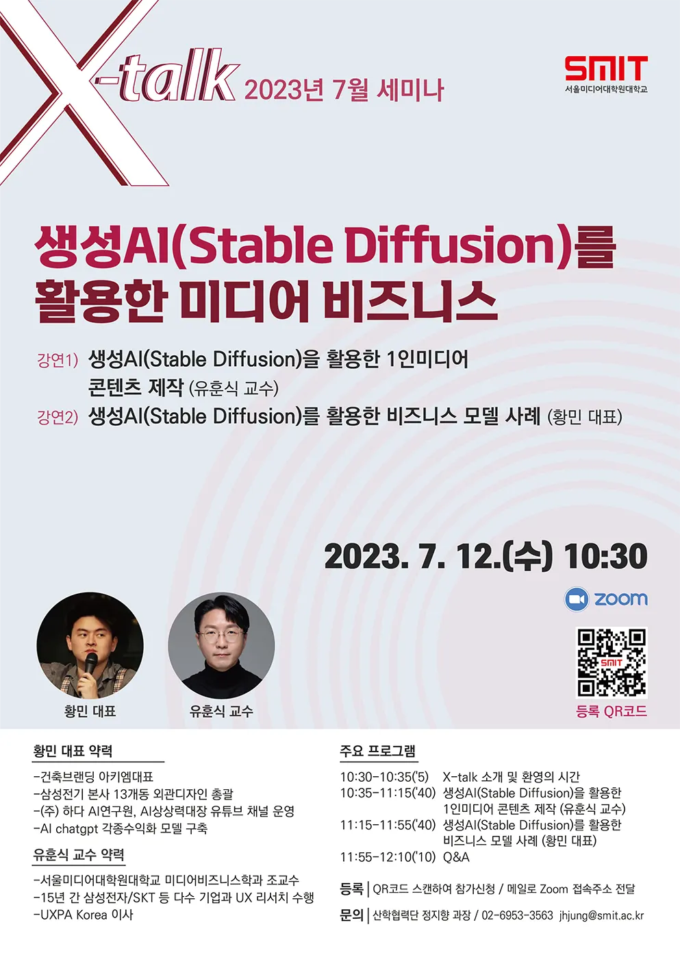 10:35~11:15 - 유훈식 교수 '생성AI(Stable Diffusion)을 활용한 1인미디어 콘텐츠 제작'