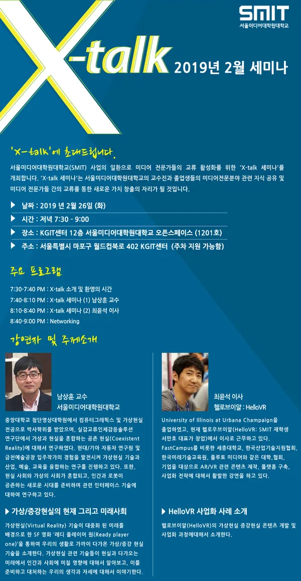 Venue: KGIT Center, 12th Floor, Open Space, Seoul Media Graduate University